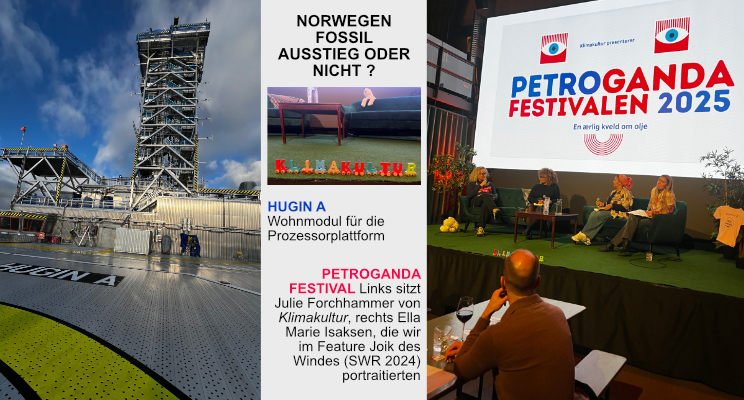 Aktuell ist wieder einmal das Thema Klima und Kultur an der Reihe. Da kommt Norwegen in den Blick, das Land mit einer recht guten Klimabilanz, Wasserkraft als erneuerbare Stromquelle, E-Autos en masse, und Energiepumpen sind auch beliebt. Aber Norwegen exportiert eben auch Öl und Gas vor allem nach Europa, und die Emissionen, die hier beim Verbrauch entstehen, fehlen auf geheimnisvolle Weise in der norwegischen Klimabilanz. Es gibt einen paradoxalen Widerspruch zwischen Klimapolitik und Ölpolitik. Das wird aber nicht mehr so unwidersprochen hingenommen, in Norwegen bewegt sich etwas. Im Deutschlandradio Kultur bei der Sendung Weltzeit ist unser Reportagenfeature zu hören.